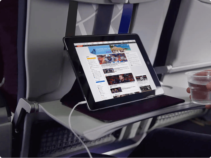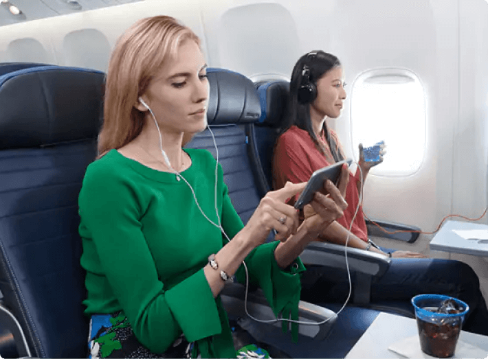 Stay connected when you fly with Wi-FiSM. It works with nearly any device (laptop, tablet or phone) and is available on most flights.