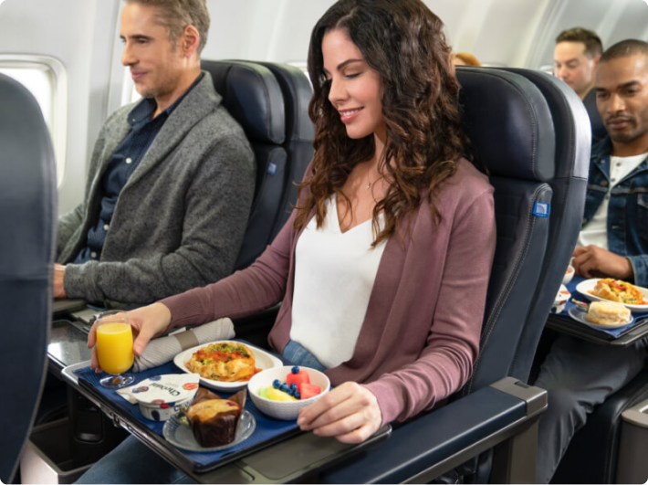 United Economy travelers can enjoy a variety of refreshments, snacks and more on board. Some are complimentary while others are available to purchase.